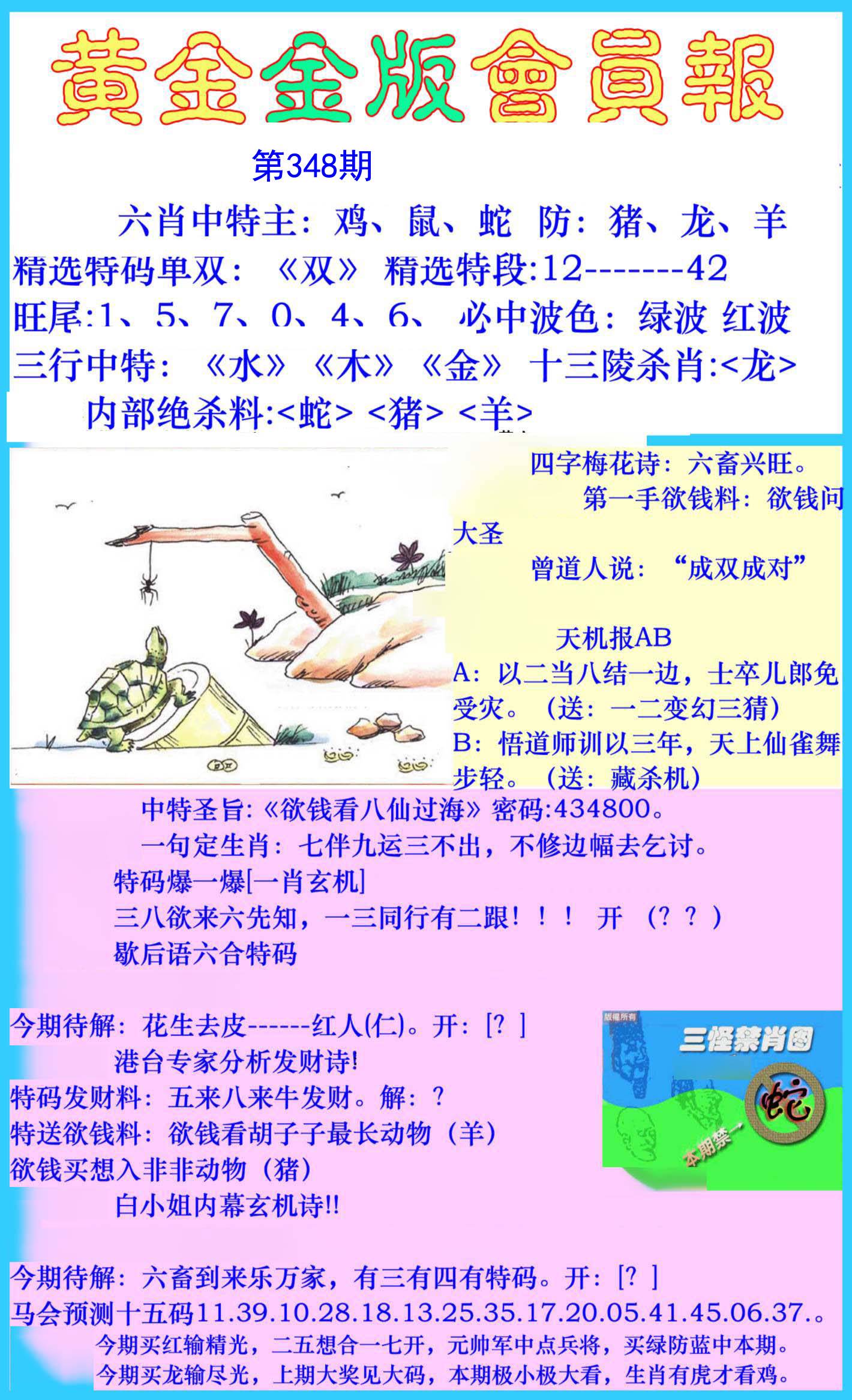 348期金牌⑥肖【猪蛇兔猴马牛】开:0准 |